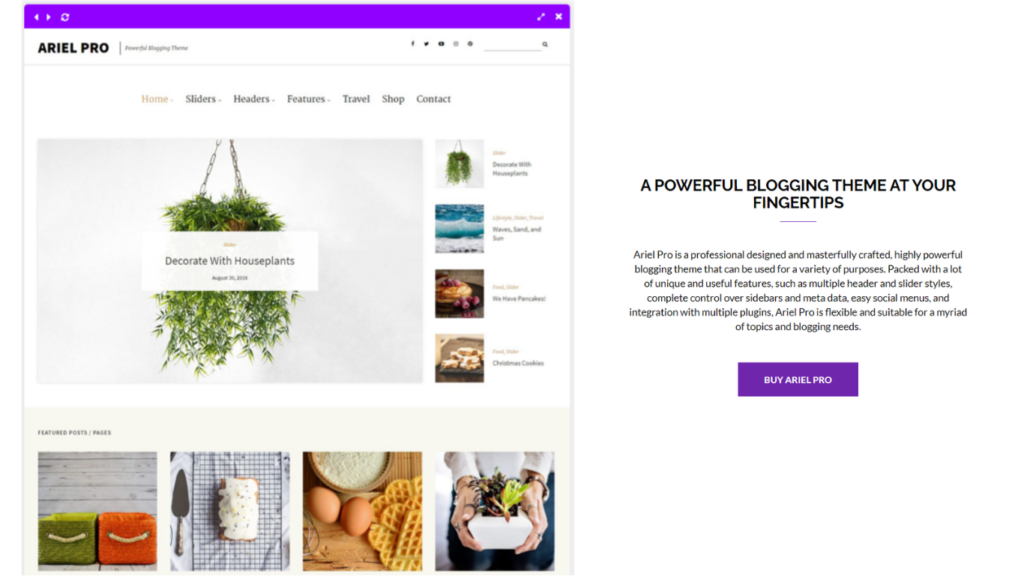 Introducing Ariel Pro, a minimalist, elegant, and highly powerful blogging theme designed to elevate your online presence. Tailored for bloggers from diverse backgrounds, this theme offers a perfect canvas for a wide range of topics, including lifestyle, personal reflections, culinary delights, fashion insights, or globetrotting adventures. Elegance seamlessly meets simplicity in this professionally crafted theme, delivering a visually appealing and feature-packed experience.